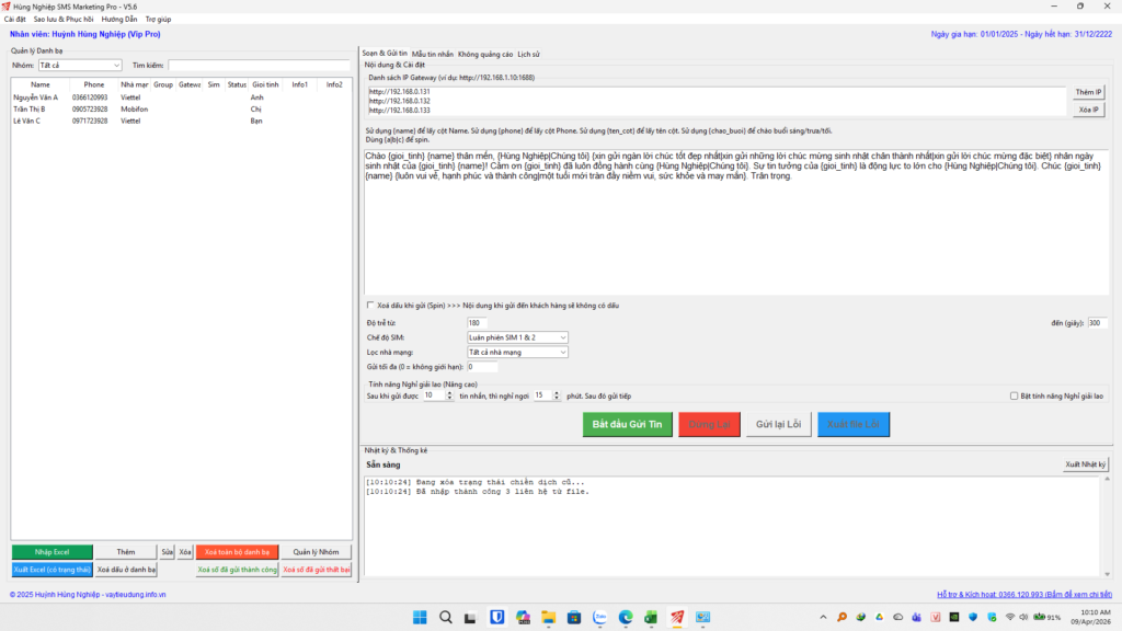 H2N – Phần mềm Hùng Nghiệp SMS Marketing Pro